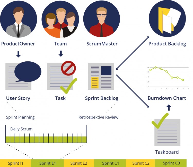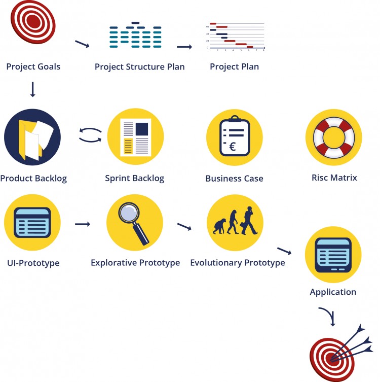Die Planung erfolgt in Iterationsschritten und Meilensteinen, die via Scrum organisiert sind.